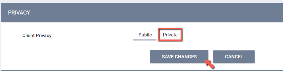 To make the client record private, navigate to the Client Privacy shield icon in the upper right-hand corner of the client record.